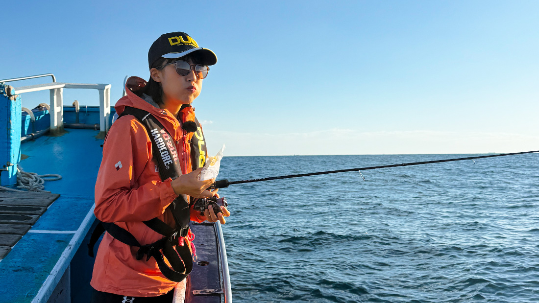 今回はデュエルの池内さんとくわがた心ちゃんが神奈川県三浦半島沖でティップランエギングを楽しみます。何よりもイカが大好きという2人。はやる気持ちを押さえながら、アオリイカのポイントを目指します。