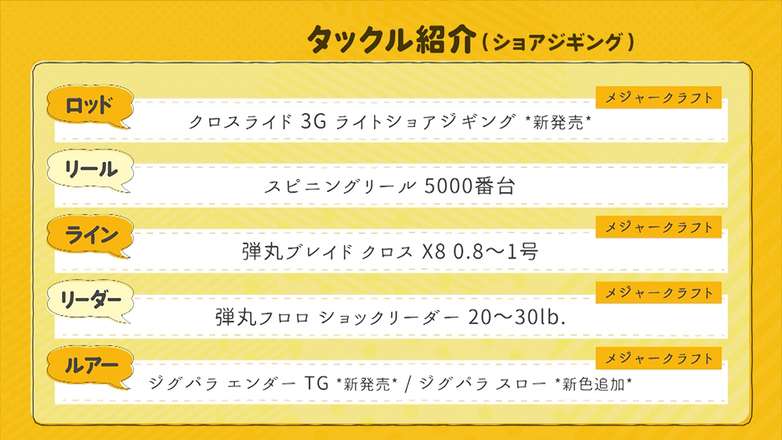 今回はメジャークラフトの広瀬さんとうらんちゃんが、愛媛県宇和海エリアでエギングとショアスロージギング!エギング専用ロッドと2.0号~2.5号のエギを使用してアオリイカを狙いつつ、同じロッドでメタルジグを使いロックフィッシュも狙います。