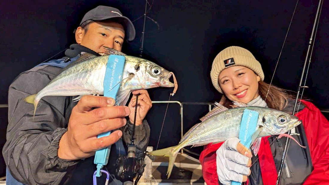 今回はメジャークラフトの広瀬達樹さんと「ルアチャンサポートメンバー」の広岡千明ちゃんが、大分県佐伯沖でバチコンアジングを楽しみます。大分県をホームに活躍するメジャークラフト・アンバサダーのモブさんも参加。ロッド、仕掛けなどバチコン専用のタックルを使用し、3人で良型のアジを狙っていくことに。