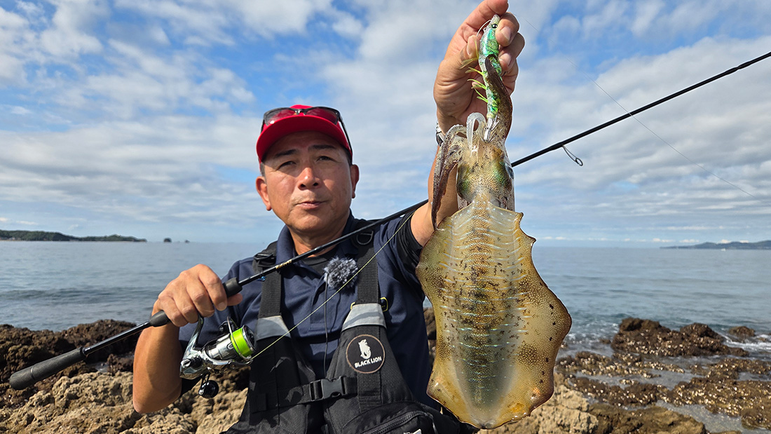 その後も、エギを変えながらキャストを繰り返しますが、アタリのない時間が…。そして、ここで作戦を変更!沖磯から地磯でのランガンに切り替えます。師匠の仙波さんからイカのいそうな場所を教えてもらいながらキャストしていくことに。