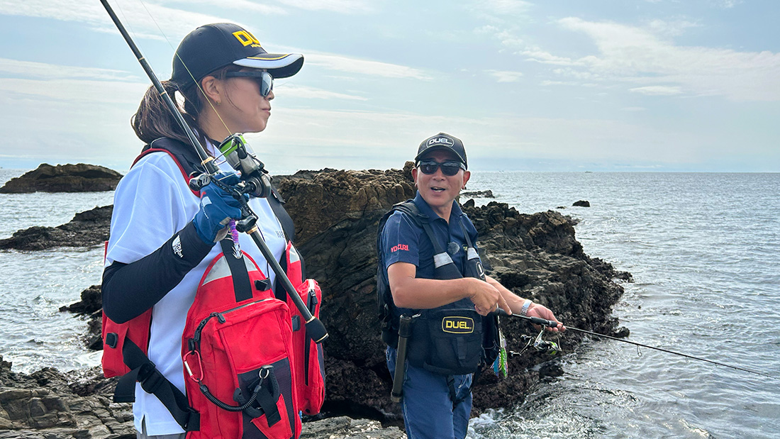今回はデュエルの仙波勝也さんとあやかちゃんが、和歌山県串本町でエギングを楽しみます!この日は、番組サポートメンバーの広岡千明ちゃんも参加。早朝に沖磯に渡った3人ですが、海の状況は悪くなかなかイカの気配を感じることができません。そんな中、ヒットしたのは千明ちゃん。かわいいアオリイカをゲットします。