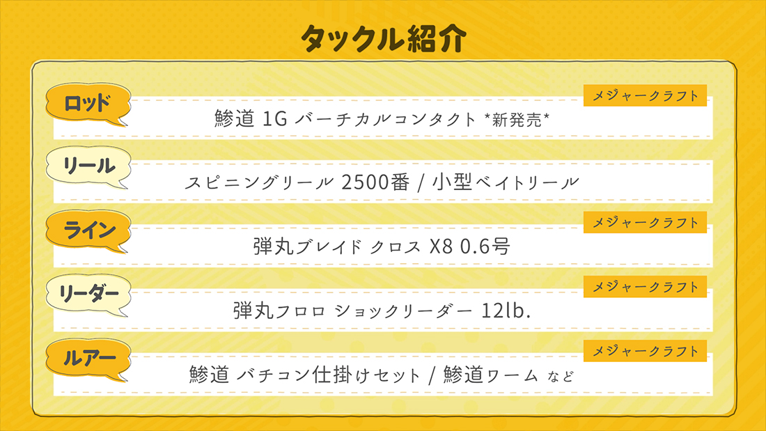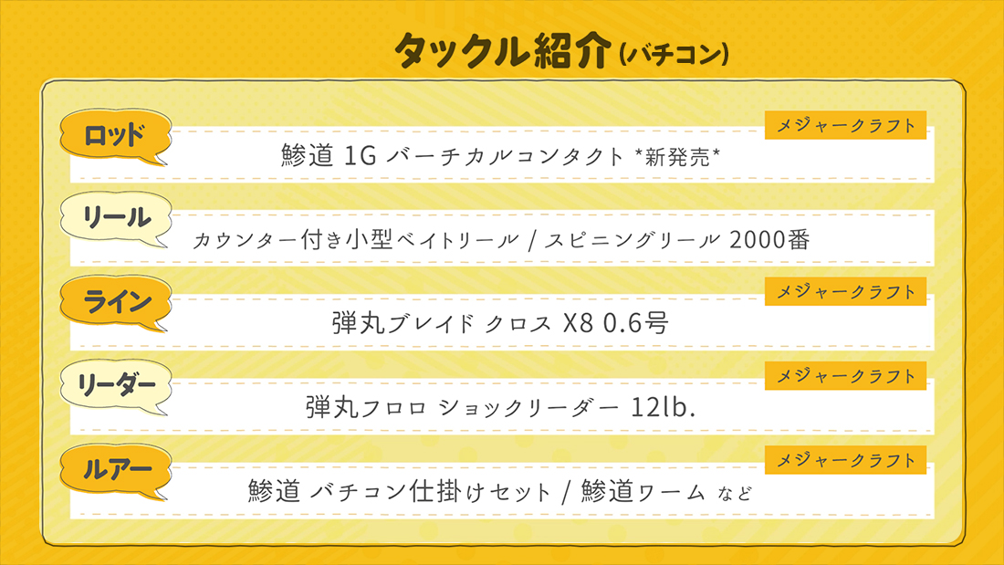 今回はメジャークラフトの広瀬達樹さんと「ルアチャンサポートメンバー」の広岡千明ちゃんが、大分県佐伯沖でバチコンアジングを楽しみます。大分県をホームに活躍するメジャークラフト・アンバサダーのモブさんも参加。ロッド、仕掛けなどバチコン専用のタックルを使用し、3人で良型のアジを狙っていくことに。