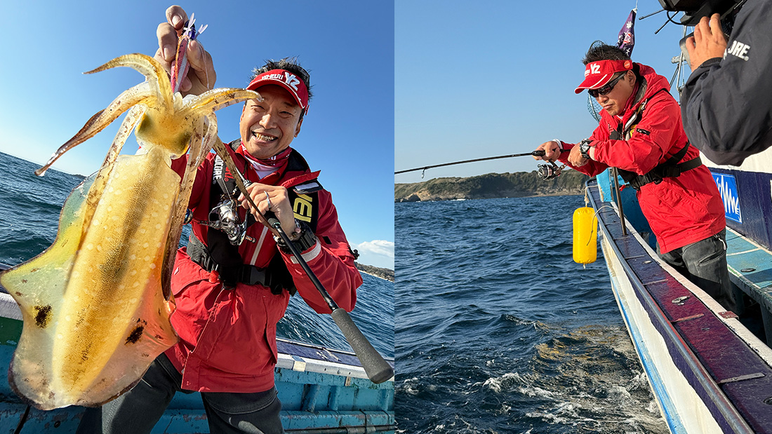 今回はデュエルの池内さんとくわがた心ちゃんが神奈川県三浦半島沖でティップランエギングを楽しみます。何よりもイカが大好きという2人。はやる気持ちを押さえながら、アオリイカのポイントを目指します。