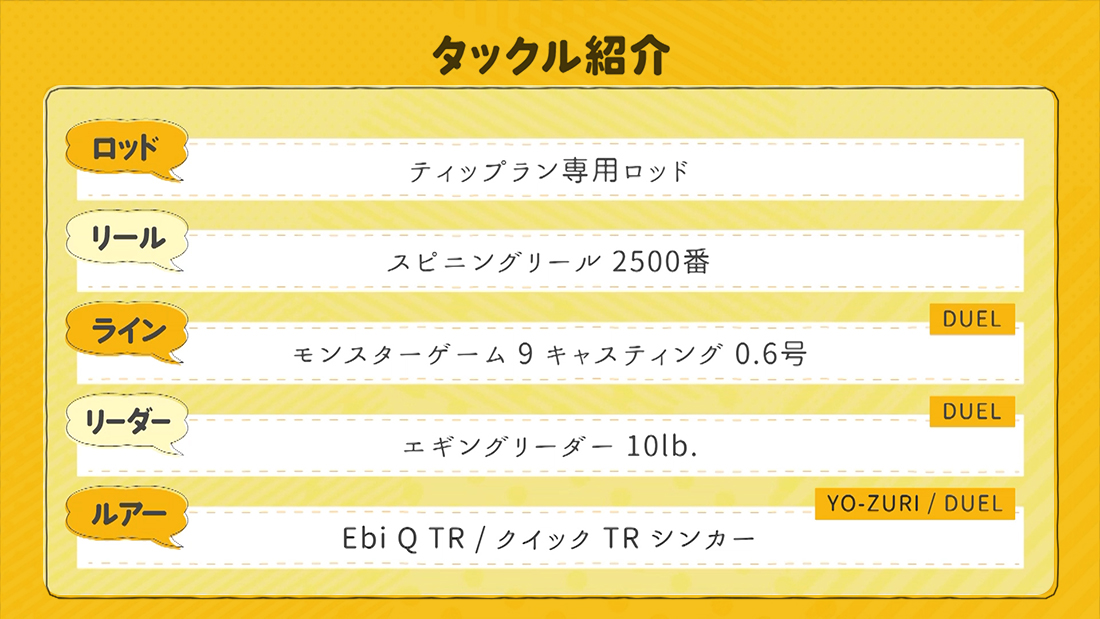 一般的なドテラ流しの釣りから、状況に応じたバーチカルな釣りまでティップランエギングの魅力をくまなく紹介。また困った時の『お助けリグ』も登場し、どんな状況でもしっかりと釣果を出せる釣り方を広瀬さんにレクチャーしていただきました。