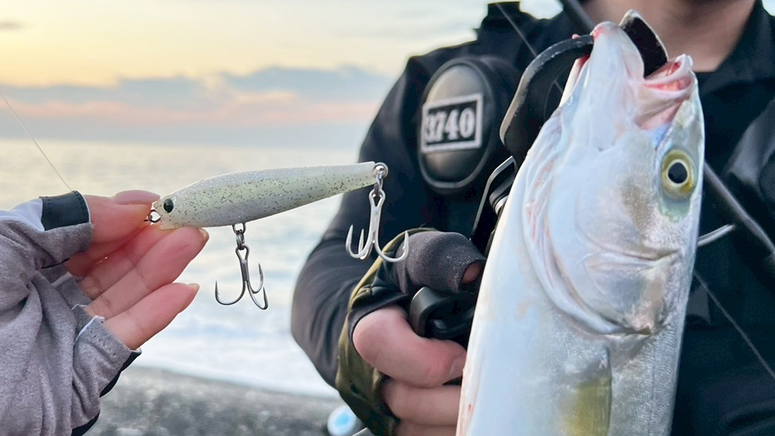 スタートは夜明け前。朝マズメの表層狙いでルアーを投入すると早速、倉田さんにモジャコ(ブリの稚魚)がヒット!そしてうらんちゃんにも反応が。水面から姿を現したのはなんと良型のフグ!とにもかくにも魚の活性は上々。時間帯で異なる魚のレンジを探りながら、新色のルアーを使用して夏のサーフ攻略に挑みます!果たして釣果やいかに!? お楽しみに! -