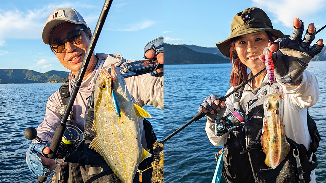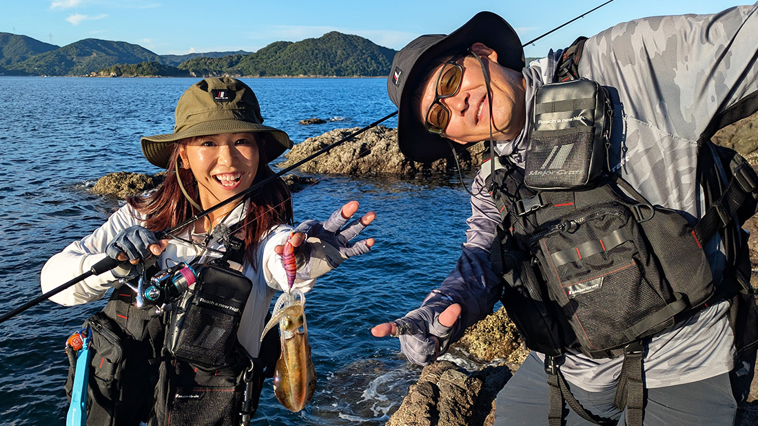 今回はメジャークラフトの広瀬さんとうらんちゃんが、愛媛県宇和海エリアでエギングとショアスロージギング!エギング専用ロッドと2.0号~2.5号のエギを使用してアオリイカを狙いつつ、同じロッドでメタルジグを使いロックフィッシュも狙います。